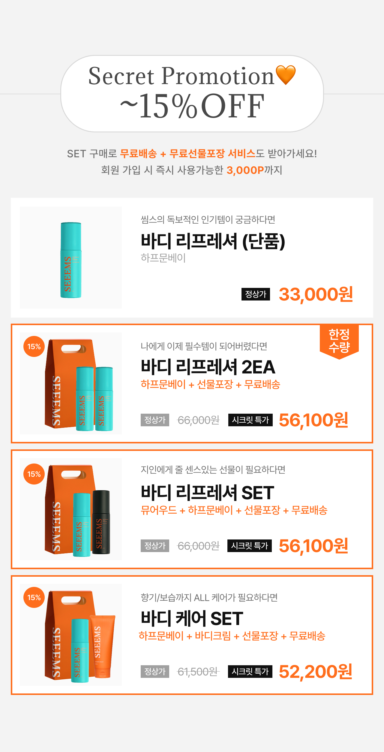 [시크릿 특가] Body Refresher ~ 15%OFF